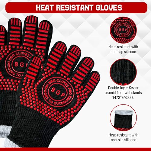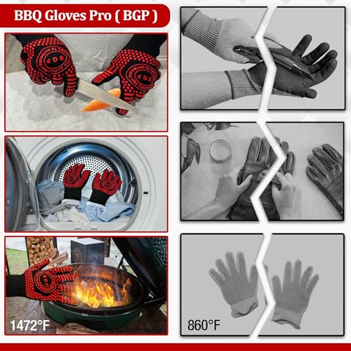 Premium Quality: Crafted from top-notch materials, these grilling gloves feature a non-slip silicone outer layer for a secure grip, double layer kevlar aramid fiber for exceptional heat and cut resistance, and a soft, breathable inner lining for maximum comfort and durability.