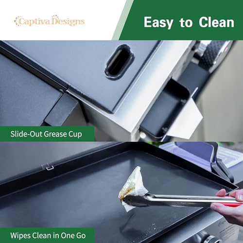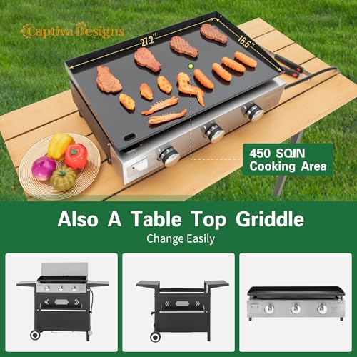 Captiva Designs 27 in Flat Top Grill with Ceramic Coated Cast Iron Pan, 3-Burner Propane Gas Griddle Grill, 33,000 BTU Output Flattop Grill for Outdoor Barbecue, Cooking and Party