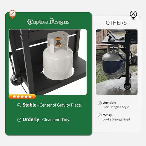 𝐒𝐚𝐟𝐞 𝐂𝐲𝐥𝐢𝐧𝐝𝐞𝐫 𝐏𝐥𝐚𝐜𝐞𝐦𝐞𝐧𝐭: Elevate your outdoor cooking with our gas grills central gas cylinder storage. Enjoy newfound stability with a low center of gravity, ensuring a secure cooking experience. Easy access, sleek design much more tidy and clean