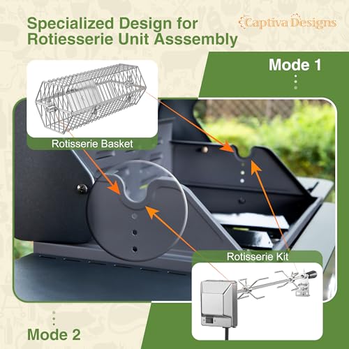 𝐒𝐮𝐢𝐭𝐚𝐛𝐥𝐞 𝐟𝐨𝐫 𝐑𝐨𝐭𝐢𝐬𝐬𝐞𝐫𝐢𝐞 𝐊𝐢𝐭: We have reserved fixed slots on both sides of the cooking area for the rotisserie kit. After removing the grill grates, you can install the rotisserie kit and rotisserie basket, providing ample space for cooking large cuts of meat such as turkey. This small change allows you to enjoy a wider variety of barbecue cooking methods.(Note: rotisserie kit or rotisserie basket NOT included)
