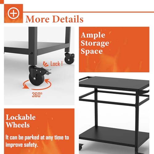 20″x32″ Double-Shelf Grill Table Movable Grill Cart, Outdoor Food Prep and Pizza Oven Table, Grill Stand Fits Blackstone Griddle 17″ 22″