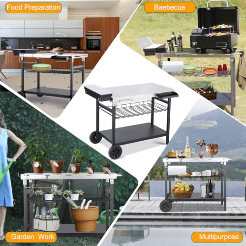 【Multifunctional Grill Cart】This Grill Cart can be used as a table to place the pizza oven, griddle, or as a cooking table to prepare foods when BBQ in outdoor. Also can be a kitchen storage islands, home storage carts, potting table, work table, etc. Meet all your needs.