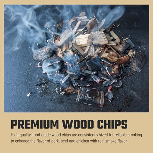 PREMIUM WOOD CHIPS: High-quality, food-grade wood chips are consistently sized for reliable smoking to enhance the flavor of pork, beef and cheese with real smoke flavor.